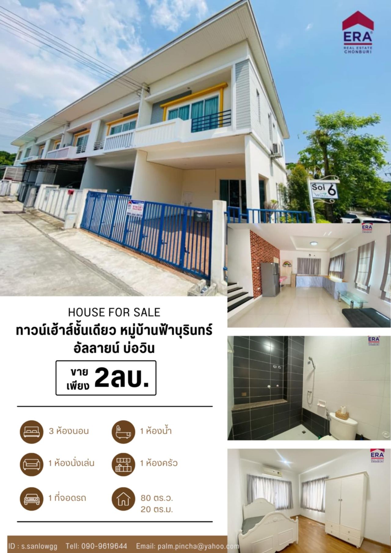 #ขายทาวน์เฮ้าส์ชั้นเดียว หมู่บ้านฟ้าบุรินทร์ อัลลายน์ บ่อวิน
