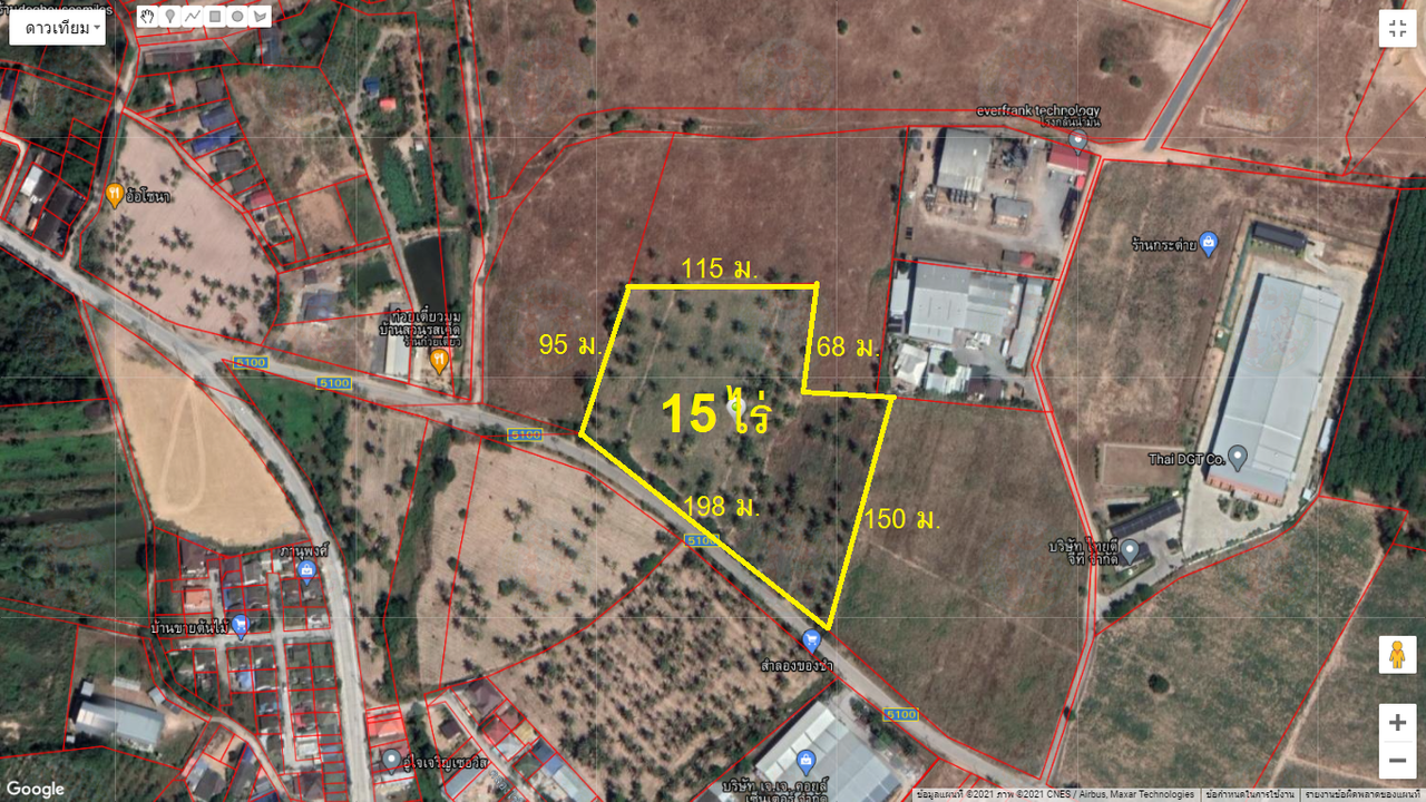 ขายที่ดินระยอง 15 ไร่ 27ตรว. พื้นที่เหลือง หน้ากว้างติดถนน ใกล้นิคมอุตสาหกรรม อมตะซิตี้ระยอง