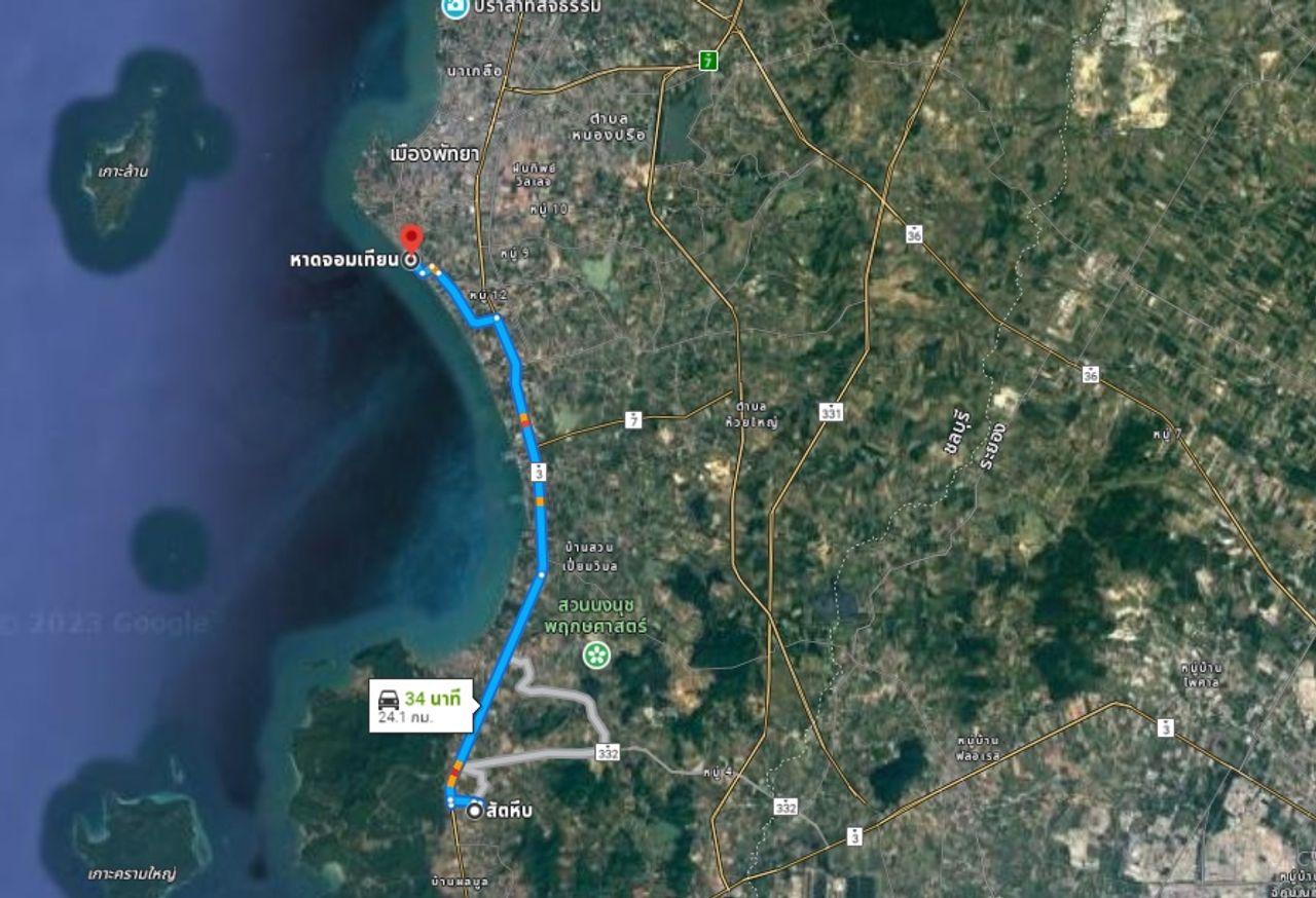 - 24.2 กม. ถึง หาดจอมเทียน เมืองพัทยา