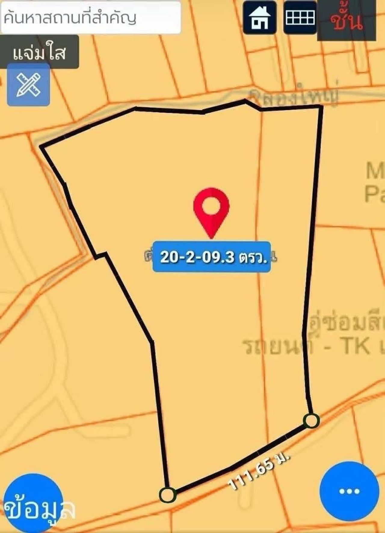 - หน้ากว้างติดถนน 111.65 เมตร