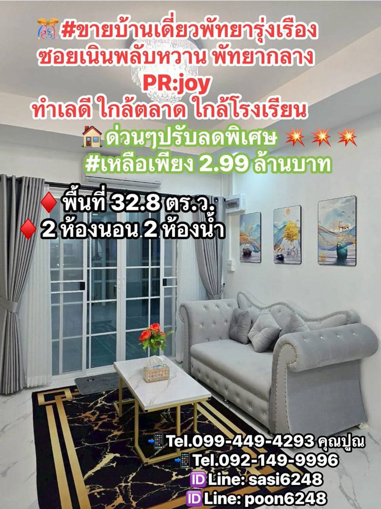 #ขายบ้านเดี่ยวพัทยารุ่งเรือง ซอยเนินพลับหวาน พัทยากลาง PR:joy ทำเลดี ใกล้ตลาด ใกล้โรงเรียน
