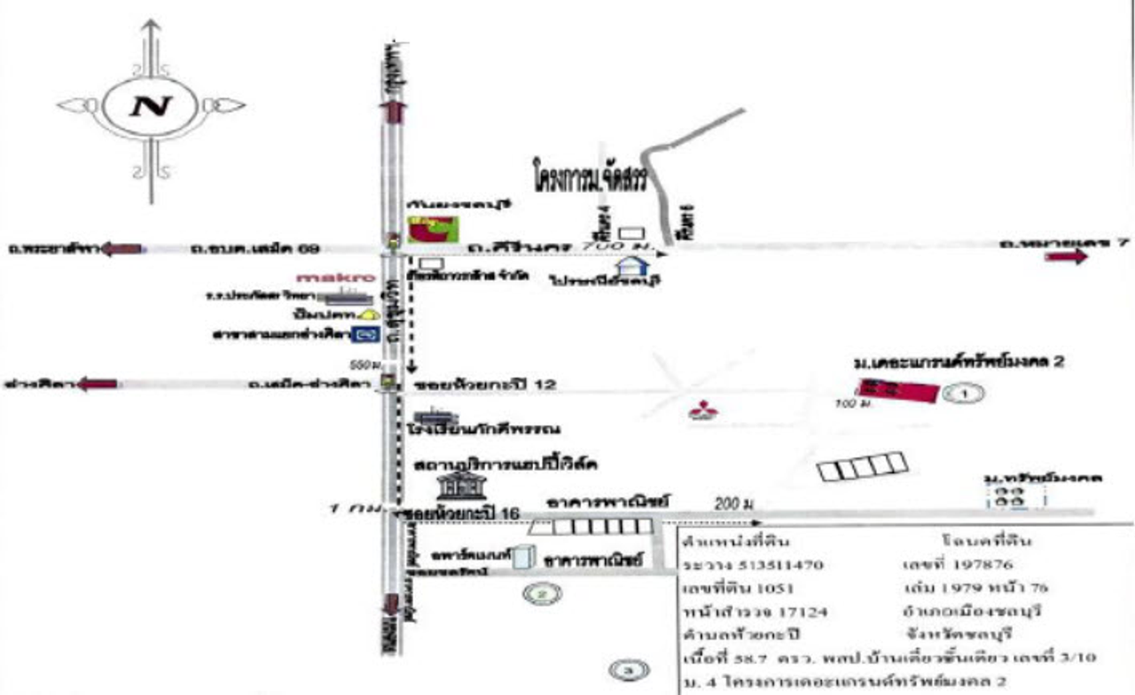 รายละเอียดเลขที่เอกสารสิทธิ์ : ที่ดินพร้อมสิ่งปลูกสร้าง 197876 ชลบุรี อำเภอเมืองชลบุรี ตำบลห้วยกะปิ