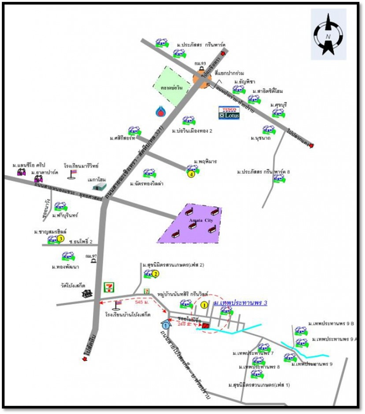 ที่ตั้ง : ทรัพย์เป็นบ้านเดี่ยวชัั้นเดียว บ้านเลขที่ 260/18 หมู่ที่ 3 ตั้งอยู่หมู่บ้านเทพประทานพร 3 จากถนนสายฉะเชิงเทรา-สัตหีบ(ทล.331) กม.97+300 แยกเข้าถนนโป่งเสก็ด-ห้วยปราบ ประมาณ 900 เมตร และแยกขวาเข้าซอยไม่มีชื่อประมาณ 250 เมตร บริเวณใกล้เคียงเป็นที่อยู่อาศัย การคมนาคมสะดวก สาธารณูปโภคพร้อม
