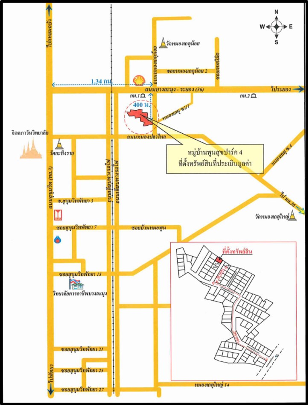 ที่ตั้ง : บ้านแฝดชั้นเดี่ยว เลขที่ 32/93 หมู่ที่ 7 ตั้งอยู่ห่างถนนบางละมุง – ระยอง(ทล.36) 400 เมตร