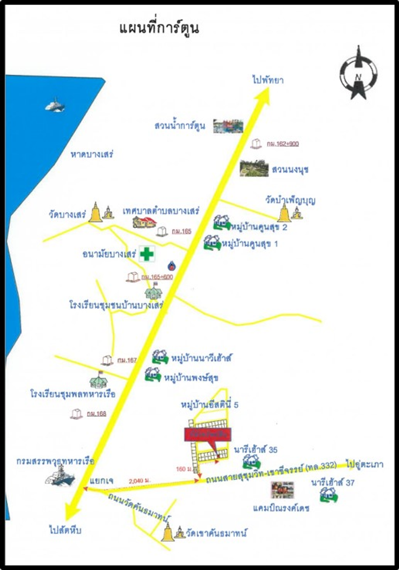 ที่ตั้ง : เลขที่ 222/106 ม.10 โครงการที่ตั้งทรัพย์ตั้งติดถนนสายสุขุมวิท – เขาชีจรรย์(ทล.332)
