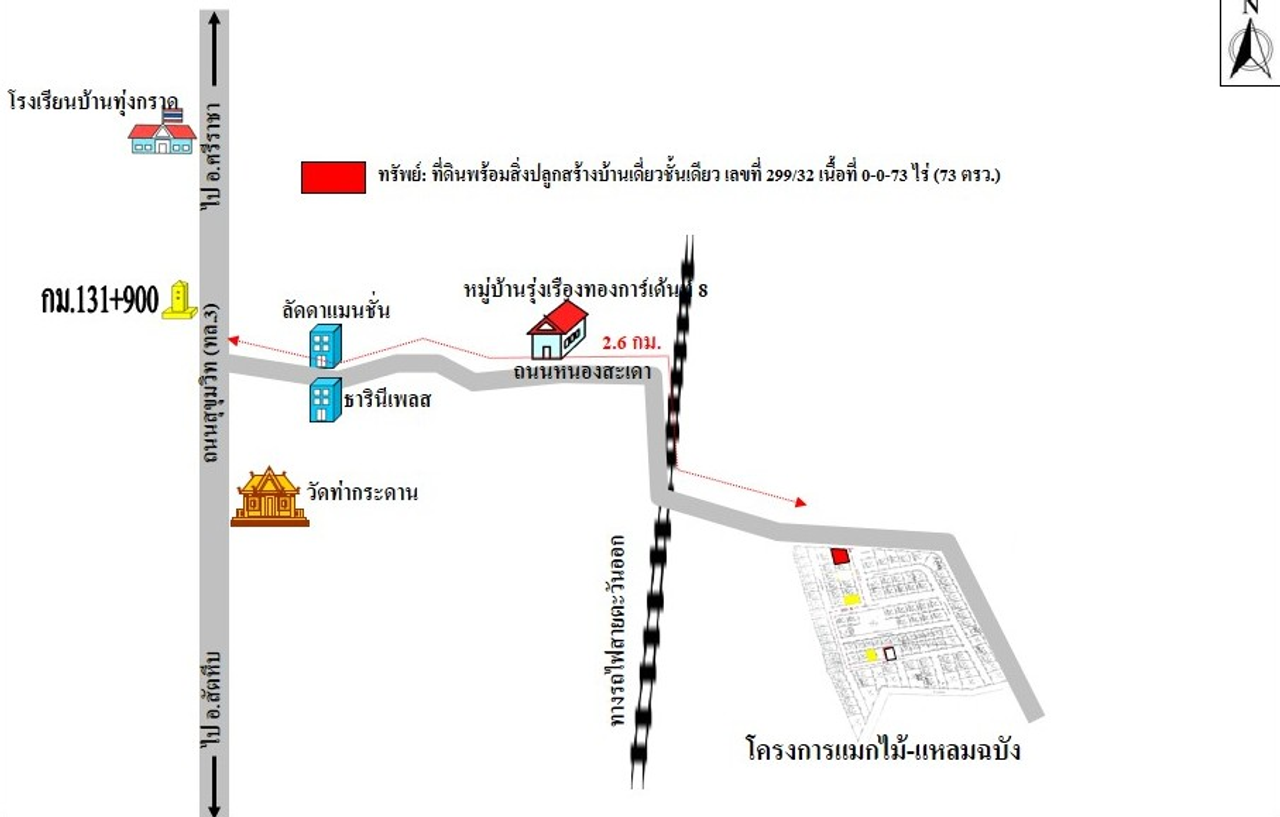 ที่ตั้ง : เลขที่ 299/32 หมู่ที่ 4 ตั้งอยู่โครงการแมกไม้ แหลมฉบัง 1 ติดถนนหนองสะเดา ห่างจากถนนสุขุมวิท(ทล.3) กม.ที่ 131+900 เมตร