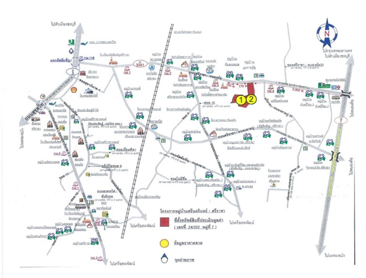 ที่ตั้ง : เลขที่ 24/202 หมู่บ้านศรีนครินทร์-ศรีราชา ใช้ถ.ศรีราชา-หนองค้อ (ทล.3241) เป็นถนนสายหลัก โดยมุ่งหน้ามาจากด้านถ.กรุงเทพ-พัทยา(ทล.7) ไปทางถ.สุขุมวิท (ทล.3) ประมาน 2 ก.ม.