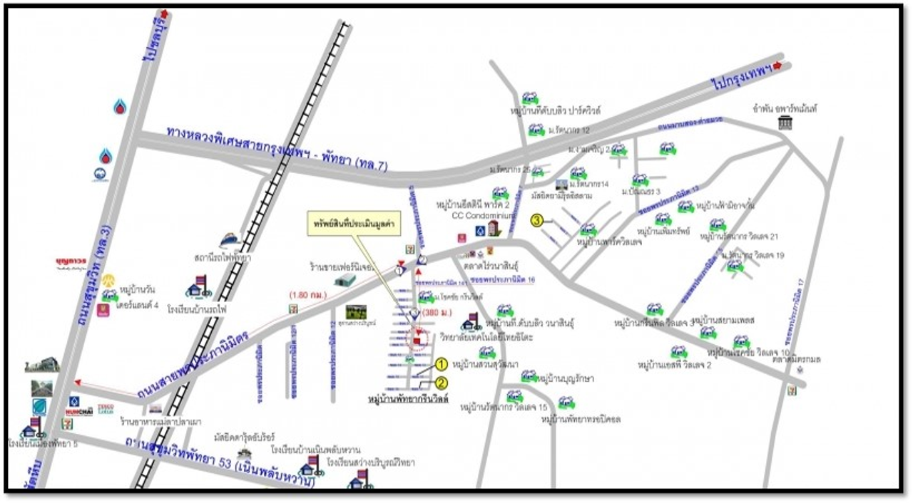ที่ตั้ง : เลขที่ 16/175 ตั้งอยู่หมู่บ้านพัทยา กรีน วิลล์ ห่างจากถนนพรประภานิมิต ประมาณ 300 เมตร ห่างจากถนนสุขุมวิท(ทล.) ประมาณ 2.2 กม. ห่างจากโรงเรียนเมืองพัทยา 5 ประมาณ 2.5 กม.และห่างจากเทศบาลหนองปรือ ประมาณ 4 กม.