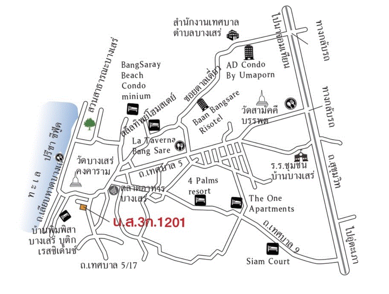 ที่ตั้ง : ซอย เทศบาล 5/17 (มาดี) ถนน เทศบาล 5 ตำบลบางเสร่ อำเภอสัตหีบ ชลบุรี
