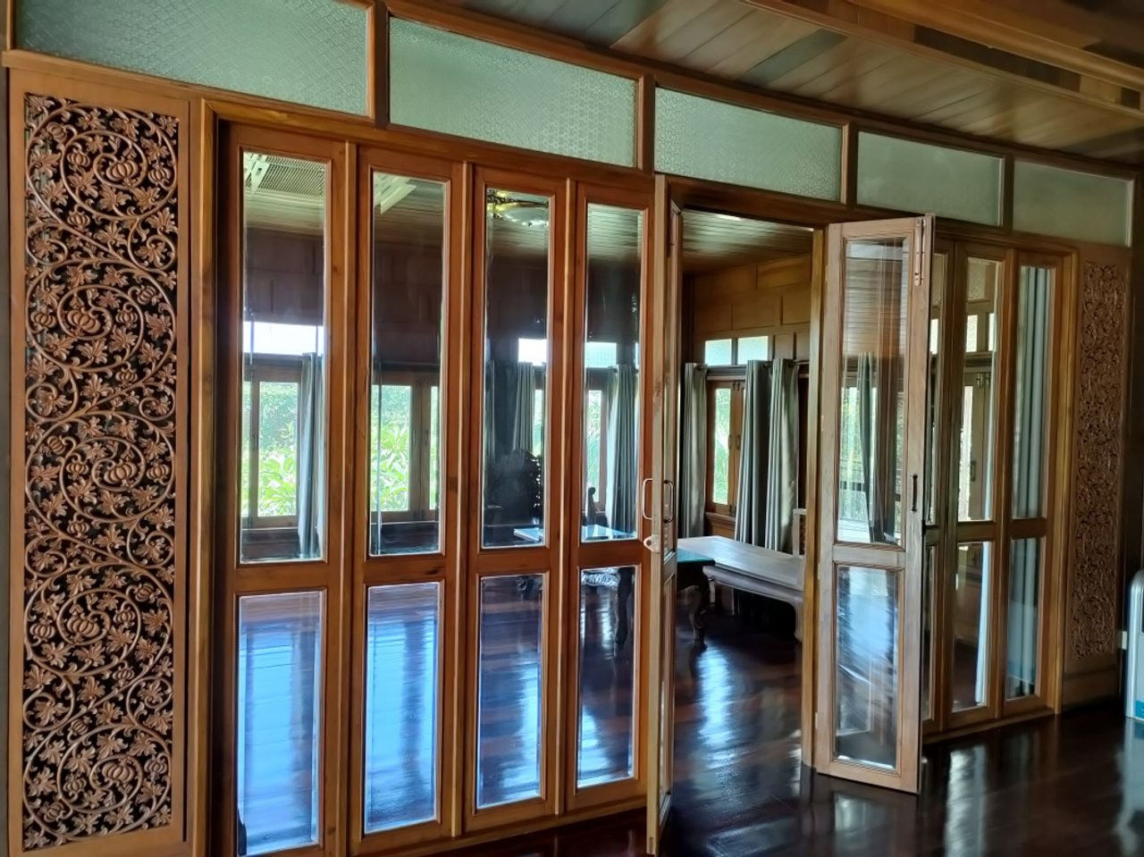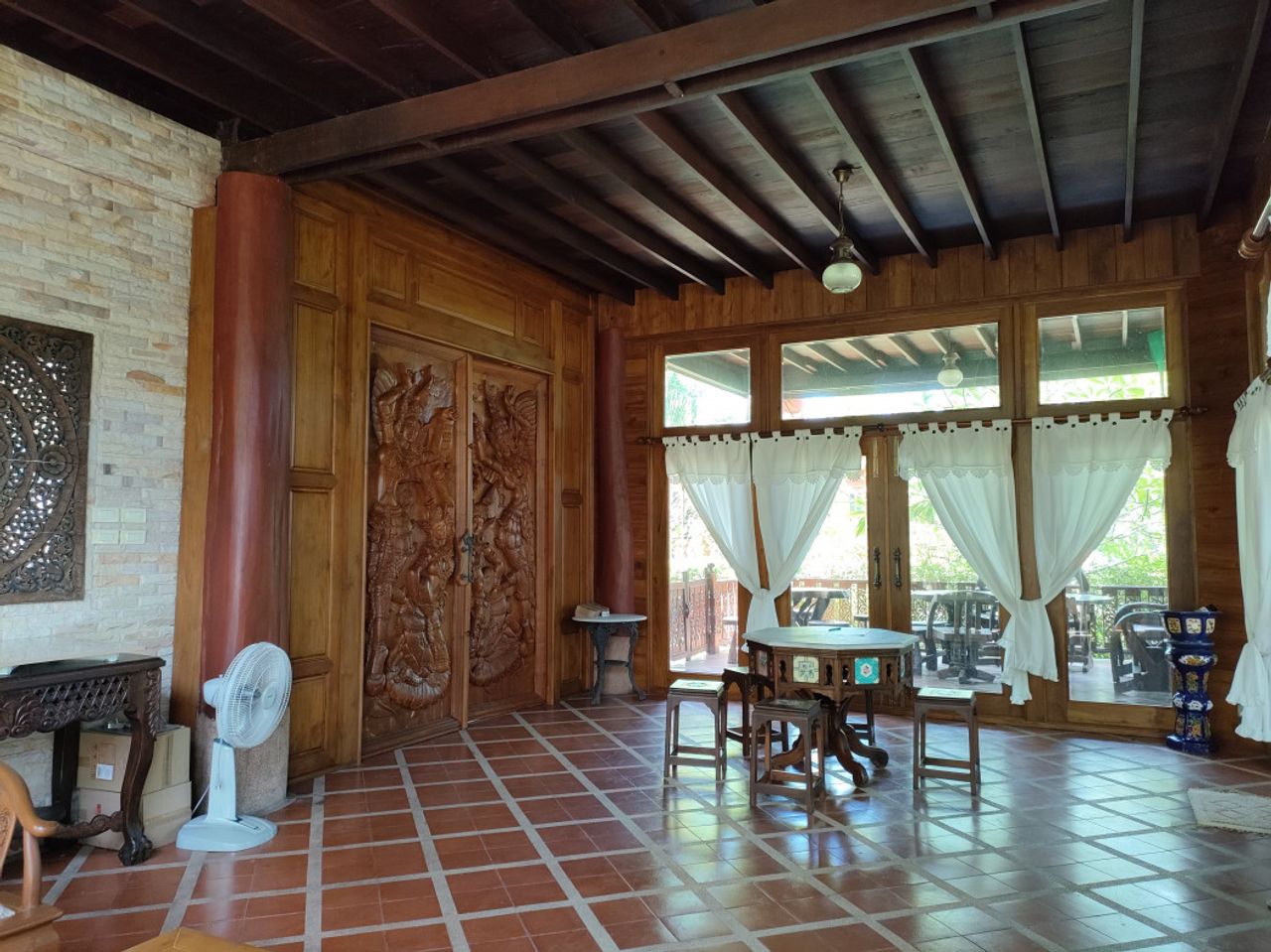 :: รายละเอียด : : - บ้านเรือนไทย ยกพื้น - ในโครงการหมู่บ้าน ติดอ่างเก็บน้ำ + วิวภูเขา - ขนาดที่ดิน 226 ตร.ว. - บ้านเรือนไทยไม้เก่า - ใช้อุปกรณ์อะไหล่บ้าน อย่างดี - ขายพร้อมเฟอร์นิเจอร์ไม้ คุณภาพ - บานประตูห้องโถง เนื้อไม้แกะสลัก สูง 2 เมตร - บานประตู ระเบียงชั้นสอง ไม้แกะสลักไม้ - ประตูห้องรับรองแขก บาน เฟี้ยม เต็มผนังห้อง