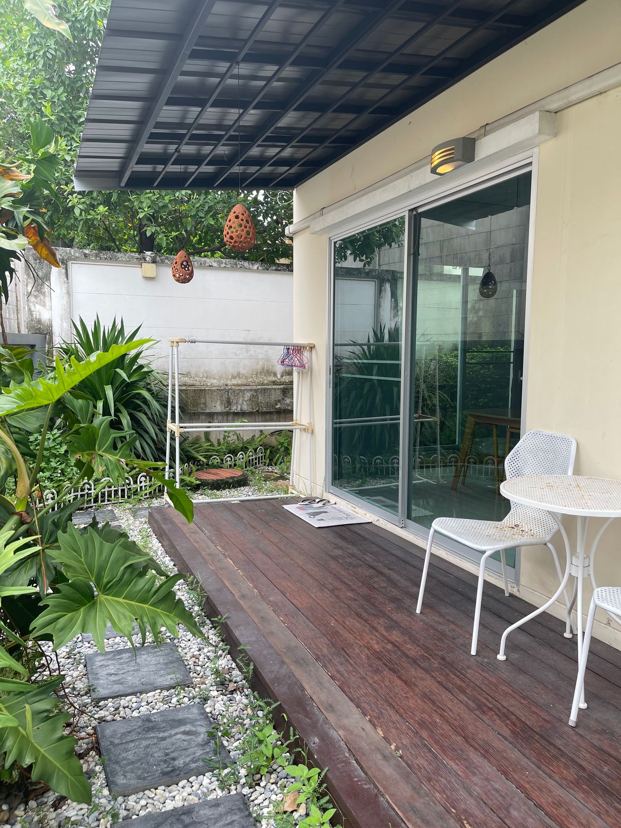 พร้อมเครื่องใช้ไฟฟ้า มีส่วนห้องซักผ้าและพื้นที่ระเบียงพรัอมสวนด้านข้างบ้าน