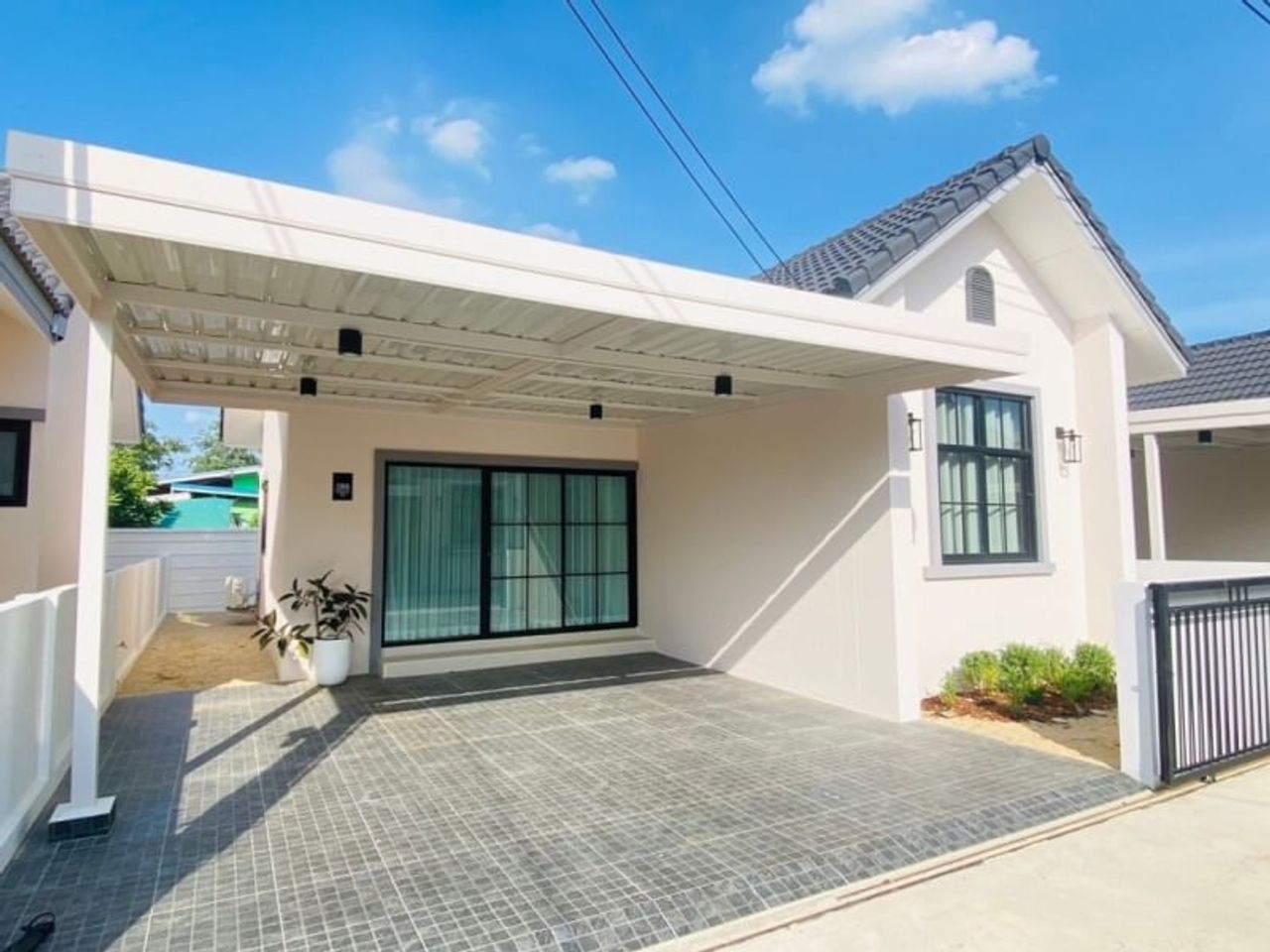 ที่จอดรถ : 2 ห้อง ต่อเติมหลังคา และปูพื้นกระเบื้องเรียบร้อยสวยงาม