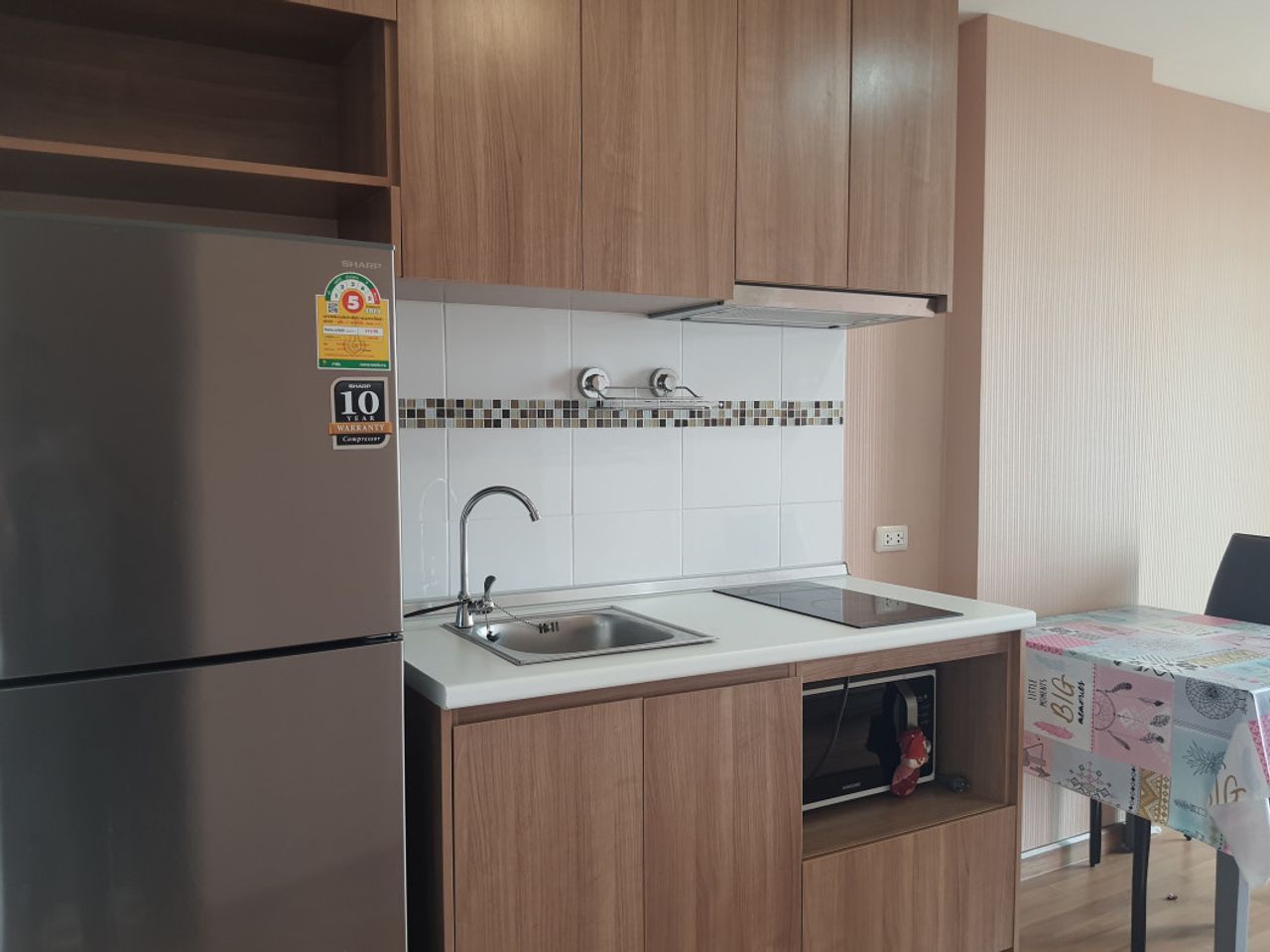 เตียงนอน โต๊ะหัวเตียง ตู้เสื้อผ้า โต๊ะเครื่องแป้ง โต๊ะทำงาน โต๊ะเก้าอี้รับประทานอาหาร ตู้เย็น2ประตู เค้าเตอร์ครัวบิ้วอิน ชั้นวางทีวี เตาไฟฟ้า ไมโครเวฟ แอร์ 2 เครื่อง