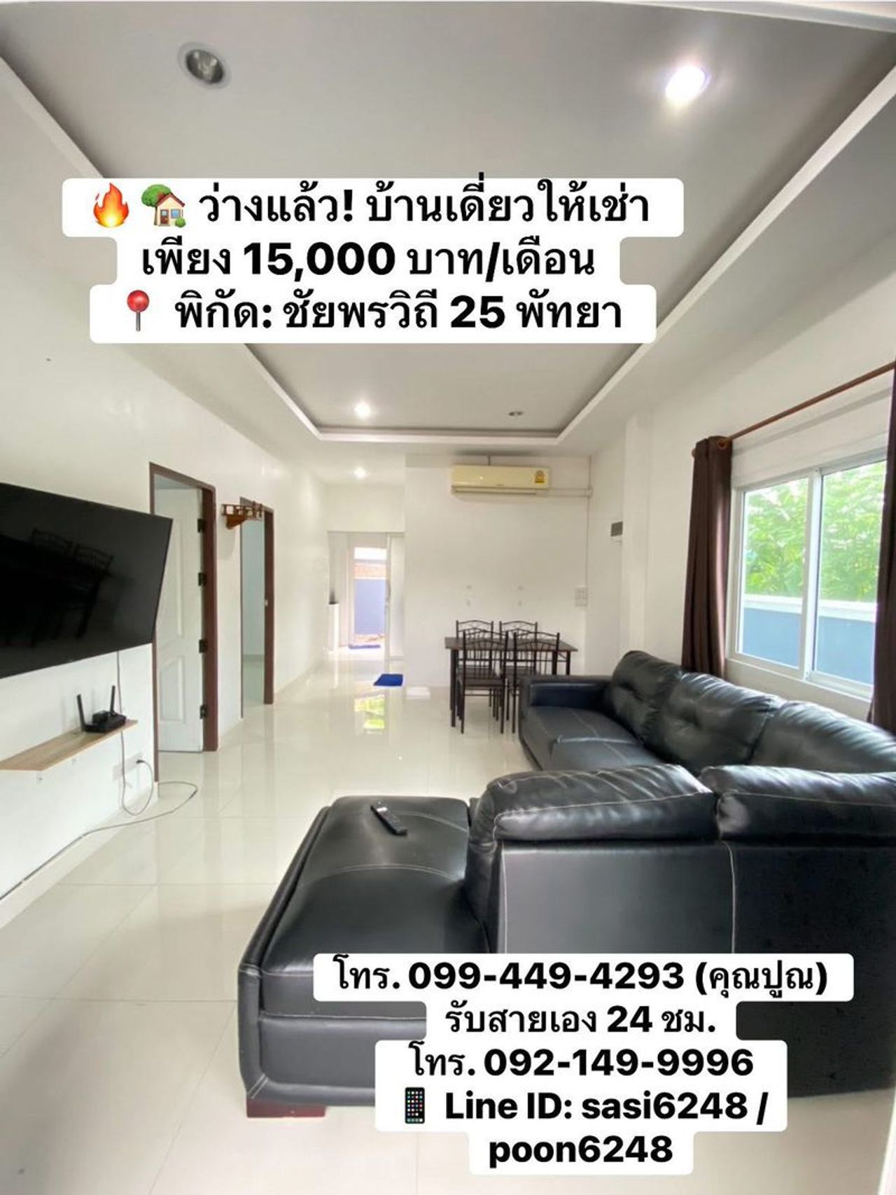 ว่างแล้ว บ้านเดี่ยวให้เช่า เพียง 15,000 บาท/เดือน