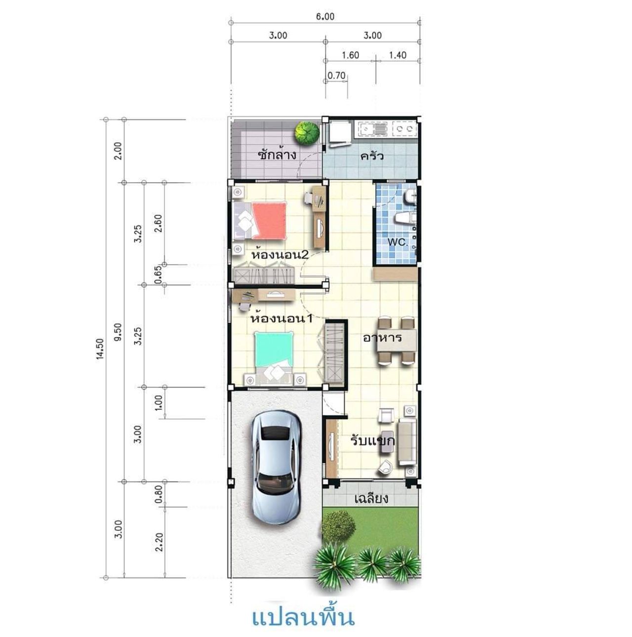 >>ขนาด 27 ตรว หน้ากว้าง 7 เมตร สามารถจอดรถยนต์ในบ้านได้ 1 คัน