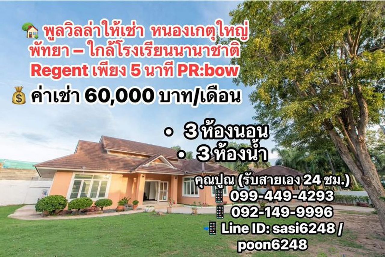 เช่าบ้าน โครงการ- #พูลวิลล่าให้เช่าหนองเกตุใหญ่ พัทยา – ใกล้โรงเรียนนานาชาติ Regent เพียง 5 นาที PR:bow พัทยากลาง เนินพลับหวาน หนองปรือ - บางละมุง - หนองปรือ