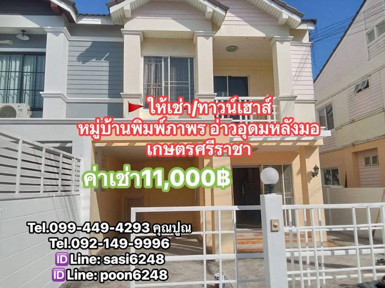 #ให้เช่า/ทาวน์เฮาส์หมู่บ้านพิมพ์ภาพร อ่าวอุดม หลังมอเกษตรศรีราชา