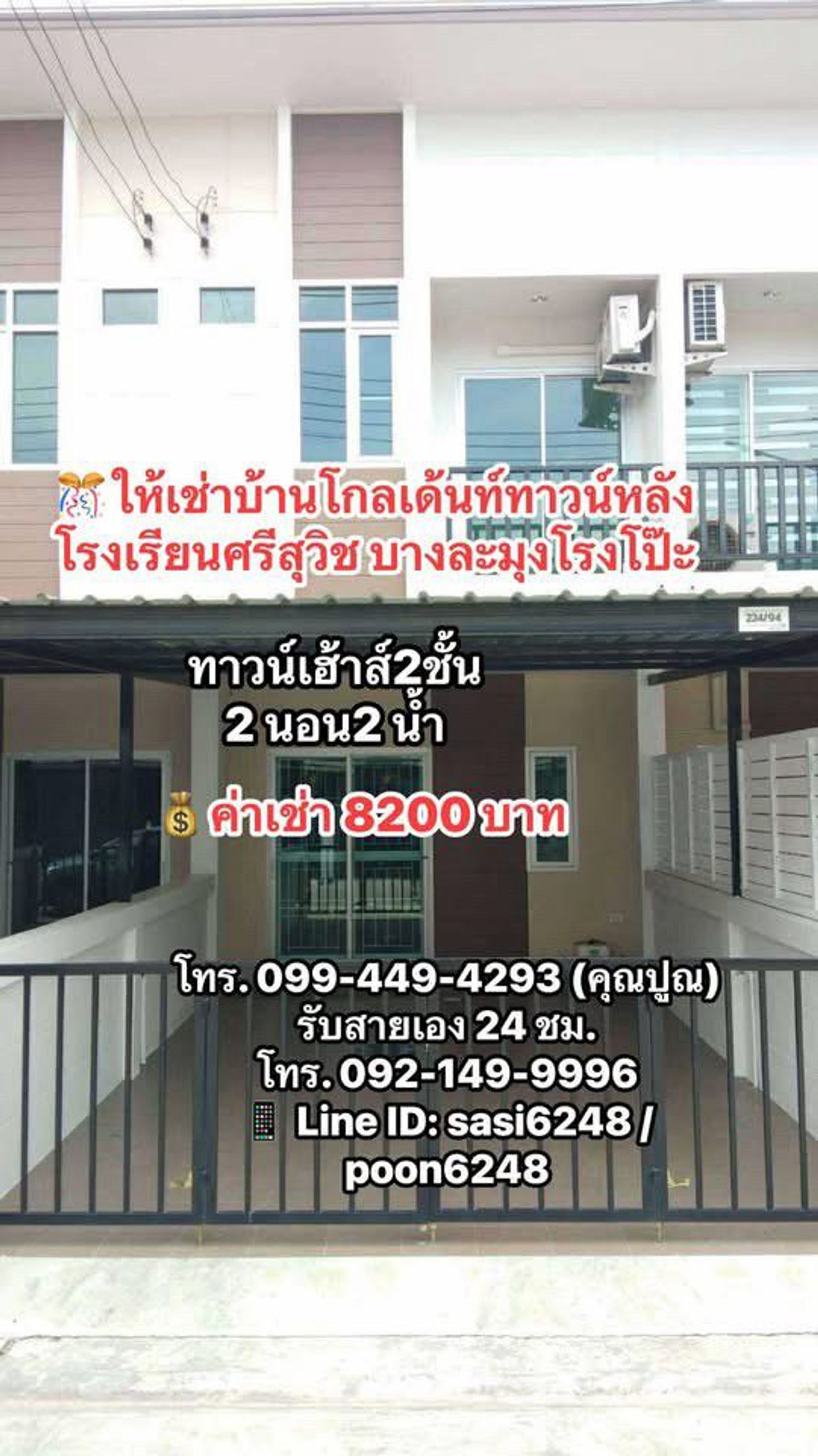 #ให้เช่าบ้านโกลเด้นท์ทาวน์หลังโรงเรียนศรีสุวิชบางละมุงโรงโป๊ะ