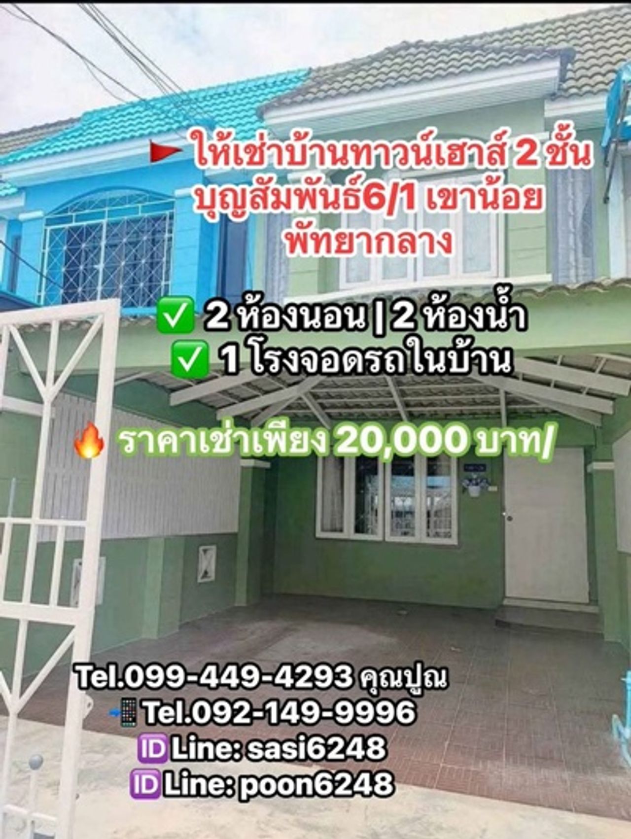 ให้เช่าบ้านทาวน์เฮาส์ 2 ชั้น บุญสัมพันธ์6/1 เขาน้อยพัทยากลาง