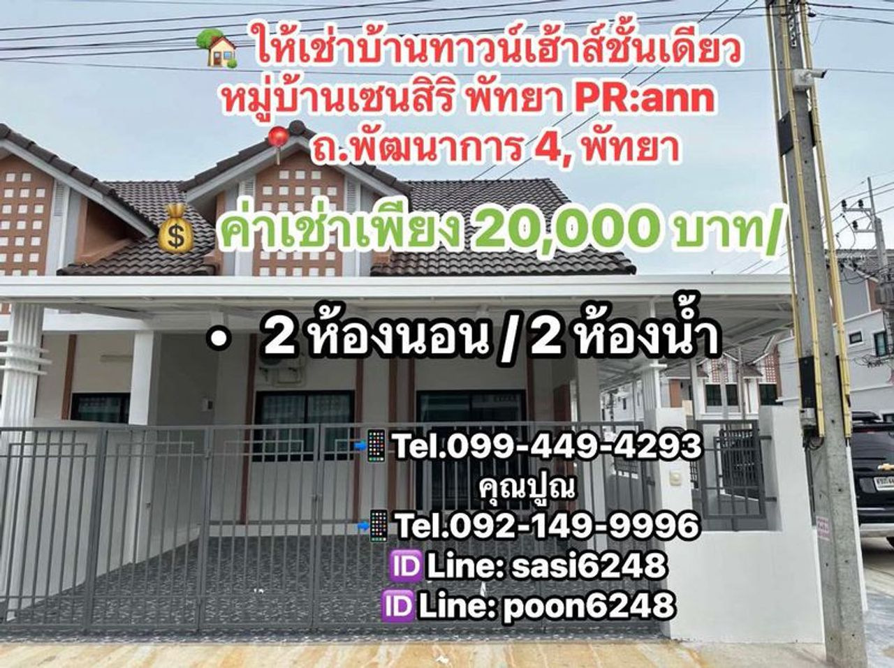 #ให้เช่าบ้านทาวน์เฮ้าส์ชั้นเดียว หมู่บ้านเซนสิริ พัทยา ถ.พัฒนาการ 4, พัทยา หลังมุม PR:ann