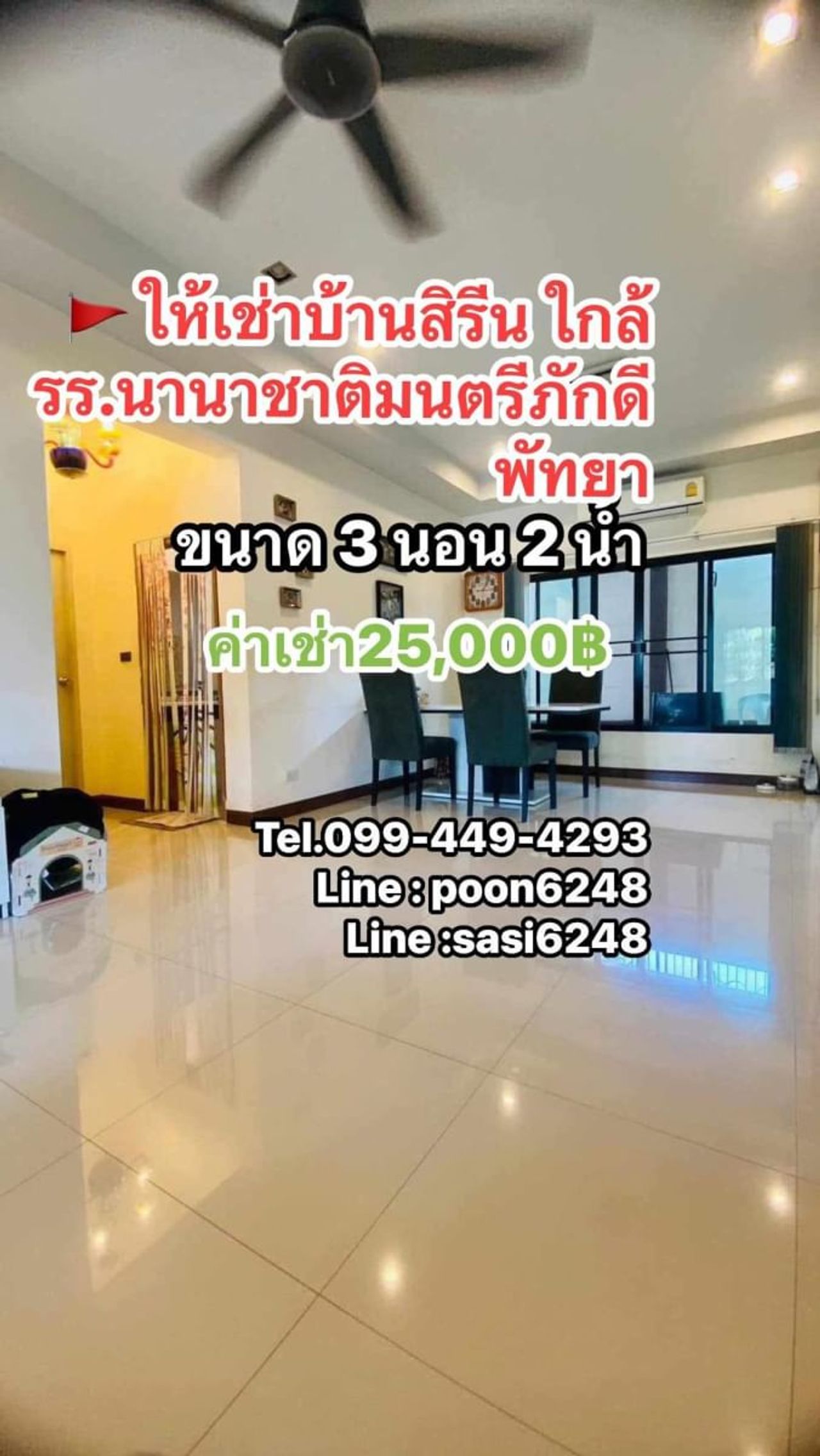 #ให้เช่าบ้านสิรีนพัทยา ใกล้รรนานาชาติภักดีมนตรีพัทยา ขนาด 3 นอน 2 น้ำ (joRich1476) พัทยากลาง เนินพลับหวาน หนองปรือ - บางละมุง - หนองปรือ