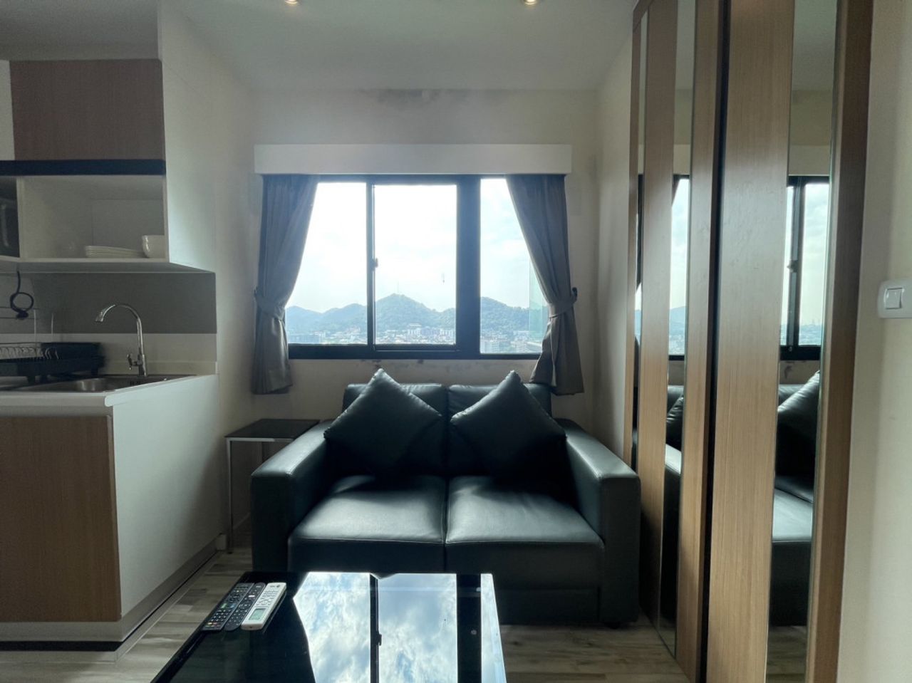 1 ห้องนอน 1 ห้องน้ำ 1 ครัว มุมนั่งเล่น วิวเมือง