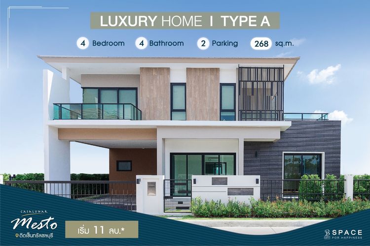 Casalunar Mesto บ้านเดี่ยวหลังใหญ่ ติดห้าง Central Plaza ชลบุรี โครงการจาก บริษัท เบญญาภา พร็อพเพอร์ตี้ จำกัด ทำเลศักยภาพ ตั้งอยู่ภายในซอยนารถมนตเสวี 30 ต.เสม็ด อ.เมืองชลบุรี จ.ชลบุรี