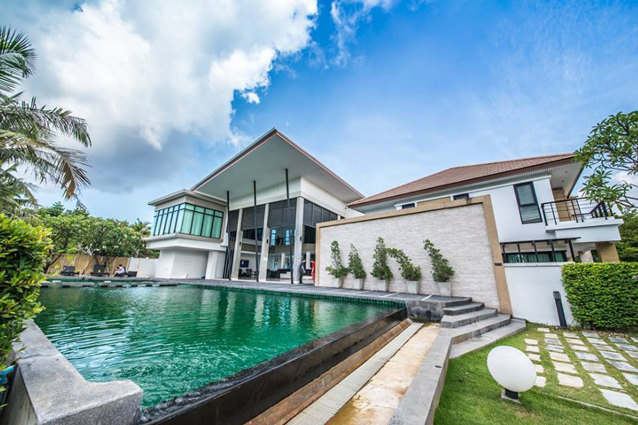 บนถนน 9 กิโล เข้าออกได้สะดวก ใกล้สุขุมวิทและบายพาส ร่มรื่น วิวสวย ครบครัน ด้วยสระว่ายน้ำ, ฟิตเนส ขนาดใหญ่ บ้านสร้างเสร็จพร้อมอาศัย