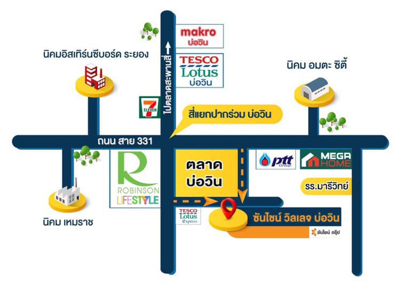 * โครงการตั้งอยู่ทำเลดีการเดินทางสะดวกใกล้ ถนนทางหลวงยุทธศาสตร์ สัตหีบ-พนมสารคาม (ถนน 331)
