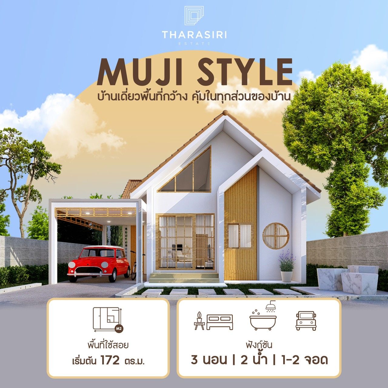 บ้านเดี่ยว 3 ไทป์ สไตล์มูจิ พื้นที่เริ่มต้น 172 ตร.ม