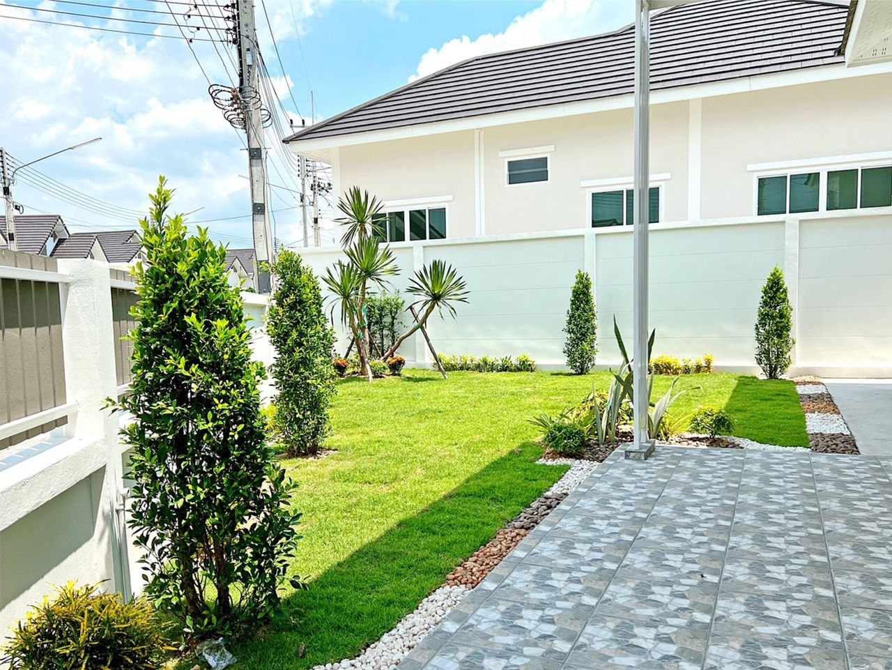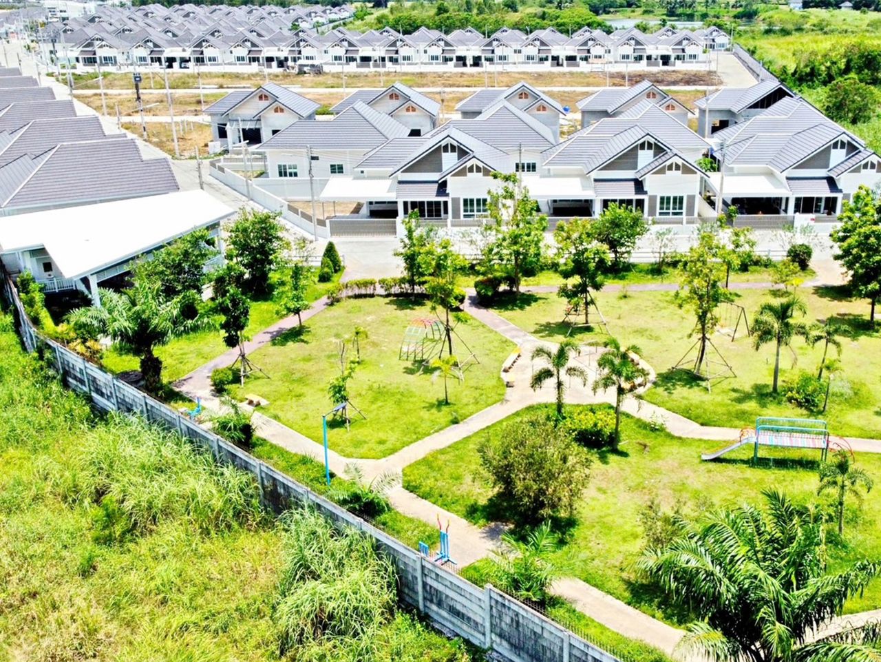โครงการบ้านอยู่สบายหนองกองเสา เป็นโครงการบ้านพักอาศัยที่มีทำเลที่ตั้งเป็นธรรมชาติบรรยากาศดี มีวิวและทิวทัศน์ที่เป็นภูเขาสวยงาม เป็นโครงการขนาดกลางค่อนข้างใหญ่ มีความเหมาะสมในการบริหารจัดการของนิติบุคคลในอนาคต การคมมนาคมสะดวกอยู่ริมถนนใหญ่ระหว่างหัวกุญแจและมาบปู เป็นบ้านและโครงการที่สร้างเพื่อให้ท่านได้อยู่อย่างสบายสบาย เหมาะอย่างยิ่งสำหรับผู้ที่ทำงานอยู่บริเวณ หนองชาก หัวกุญแจ ท่าจาม หนองปรือโดยเฉพาะนิคมอุตสาหกรรมมาบปู บ่อวิน และโรงงานที่อยู่ในละแวกข้างเคียง มีร้านค้าสะดวกซื้ออยู่ด้านหน้าโครงการ