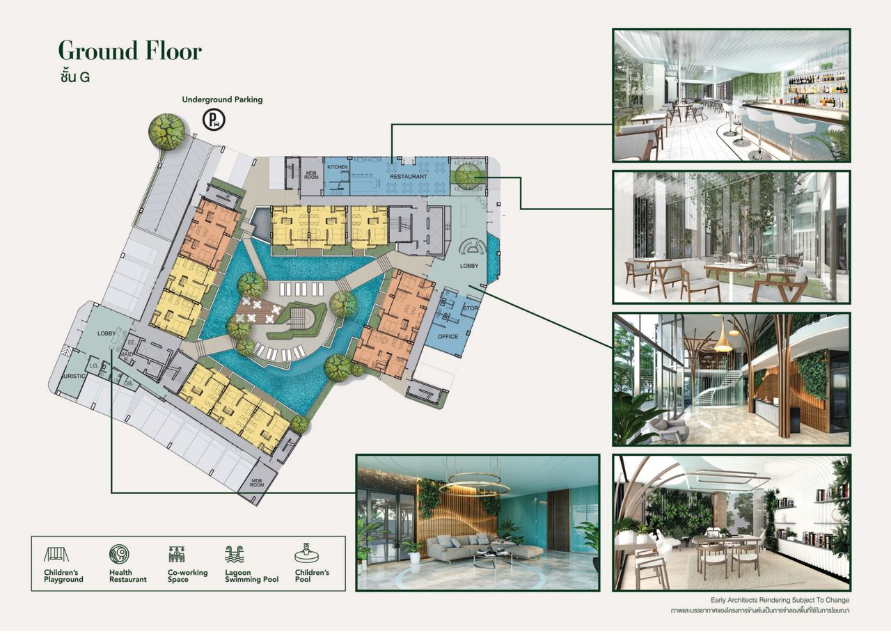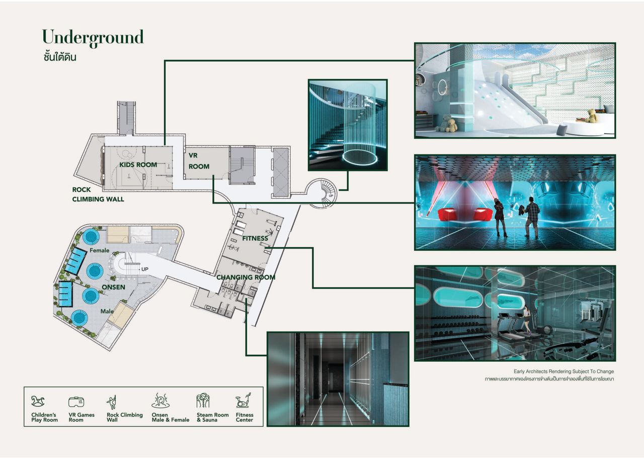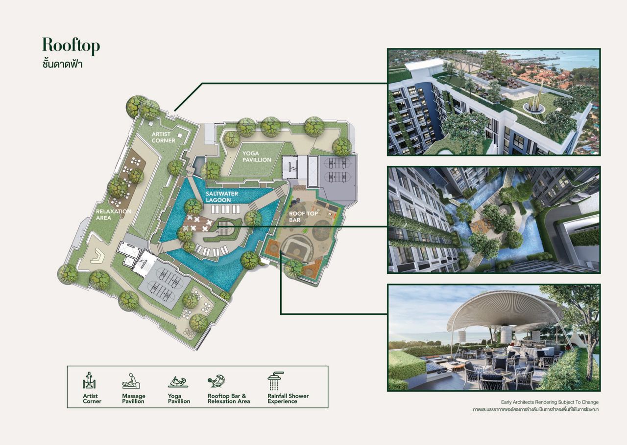 - สิ่งอำนวยความสะดวกที่หลากหลายกว่า 4 ชั้น (บนชั้นดาดฟ้า, ชั้นล่าง, ชั้น 2 (Co-working) และ ใต้ดิน)