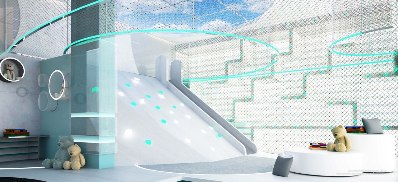 • สวนบนชั้นดาดฟ้าและพื้นที่นั่งเล่น
