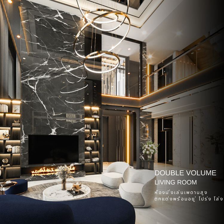 • 𝗗𝗼𝘂𝗯𝗹𝗲 𝗩𝗼𝗹𝘂𝗺𝗲 𝗟𝗶𝘃𝗶𝗻𝗴 𝗥𝗼𝗼𝗺 ห้องนั่งเล่นเพดานสูง ห้องรับประทานอาหาร ที่เชื่อมต่อกับสระว่ายน้ำ มีมุมพักผ่อนที่กว้างขึ้นสำหรับทุกคนในครอบครัว