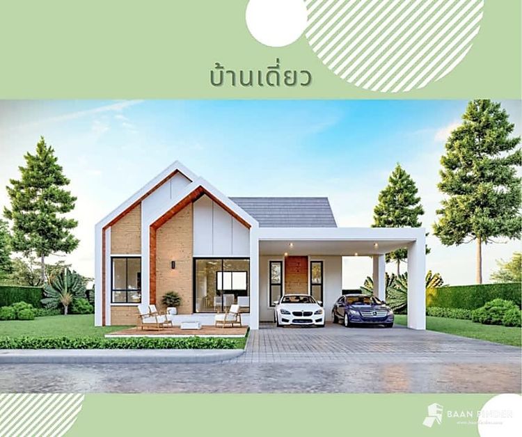 บ้านเดี่ยวชั้นเดียว 𝑻𝒉𝒆 𝑷𝒓𝒐𝒖𝒅 𝑾𝒂𝒏𝒕𝒉𝒊𝒑 บ้านสไตล์มินิมอลนอร์ดิก อบอุ่น เรียบง่าย ลงตัวกับพื้นที่ใช้สอย 125-150 ตร.ม. 2-3 ห้องนอน 3 ห้องน้ำ พร้อมหลังคาโรงจอดรถ จอดได้ 2 คันสบายๆ ตัวบ้านสูงโปร่ง ให้ความรู้สึกโล่งเย็นสบาย หน้าบ้านหันทิศเหนือใต้ถูกหลักฮวงจุ้ย รับลมธรรมชาติและเลี่ยงแสงแดดที่จะส่องเข้าบ้านโดยตรง