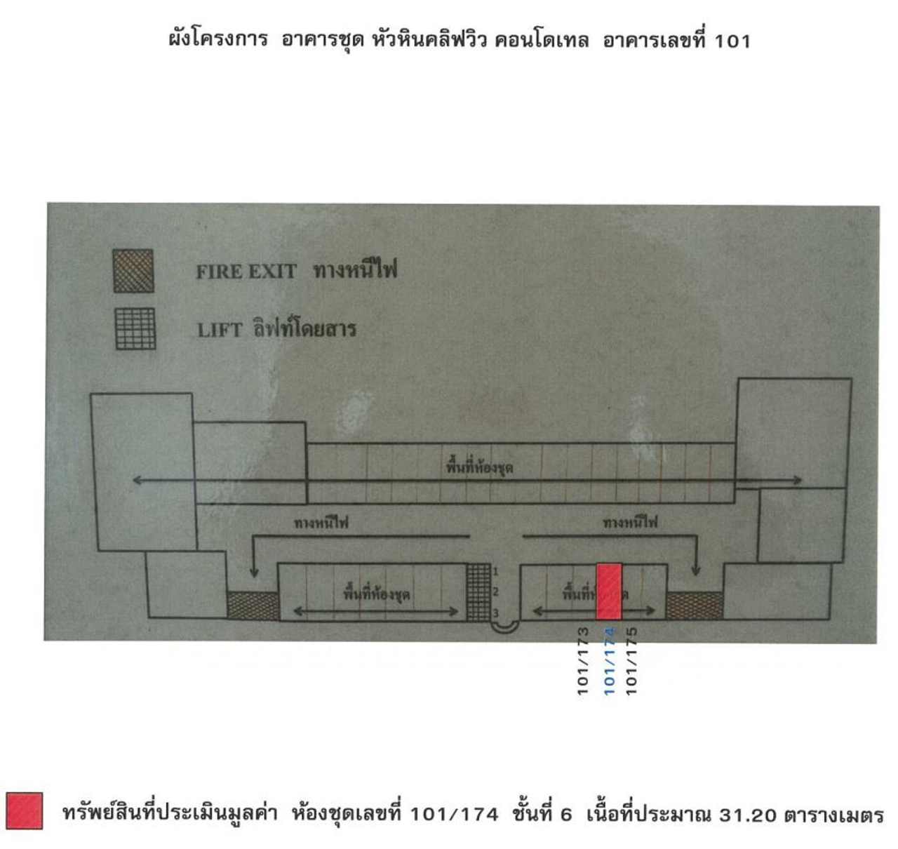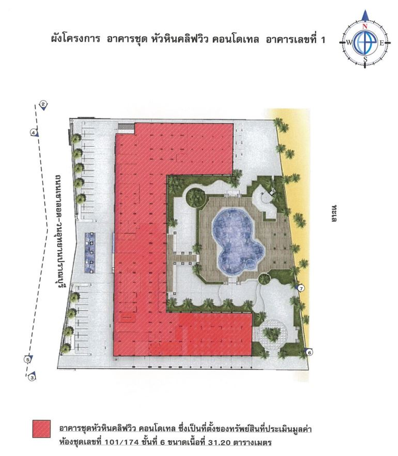 ที่ตั้ง : ห้องชุดอาศัย เลขที่ 101/174 ชั้น 6 อาคารชุด หัวหิน คลิฟวิว เนื้อที่ 31.2 ตร.ม. ติดชายหาด ห่างวนอุทยานปราณบุรี ประมาณ 2.0 กม.