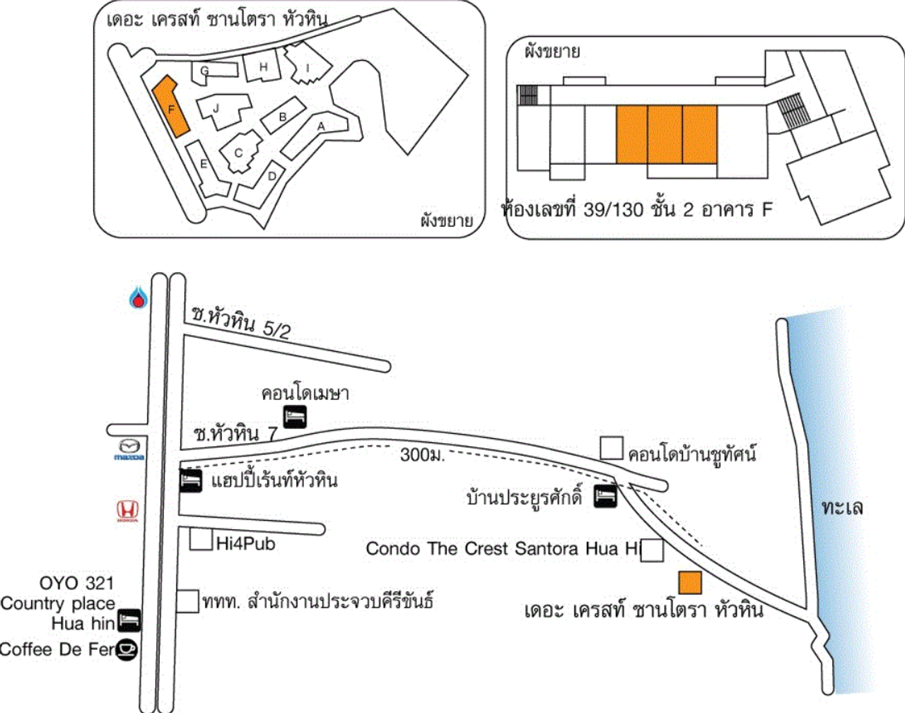 ที่ตั้ง : 39/130 ชั้น 2 ซอย หัวหินซอย 7 ถนน เพชรเกษม ตำบลหัวหิน อำเภอหัวหิน ประจวบคีรีขันธ์