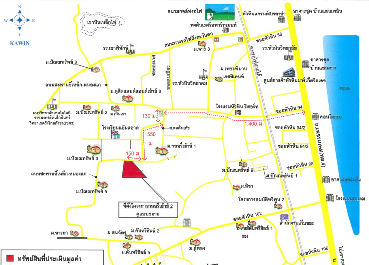 ที่ตั้ง : 35/366 โครงการกลอลี่เฮ้าส์ 2 ห่างถนนเพชรเกษม ทล.4 ซอย หัวหิน 94 2.2 กม.