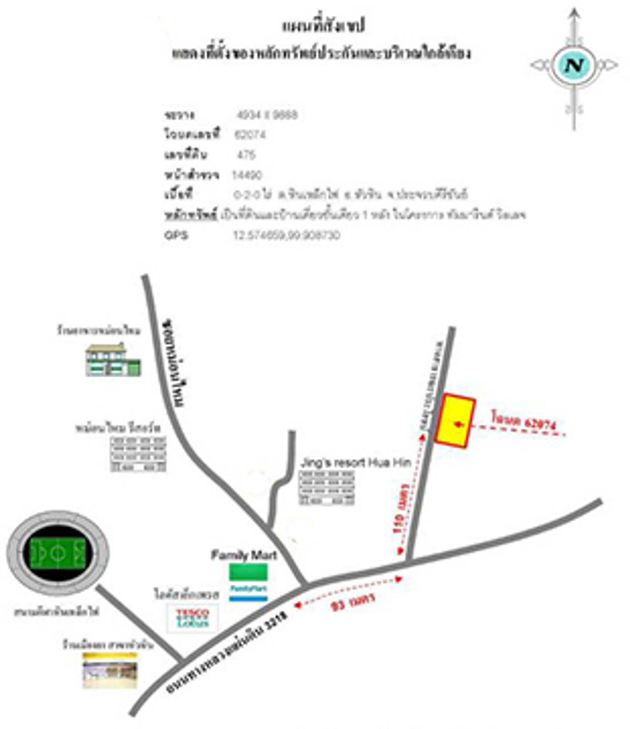 รายละเอียดเลขที่เอกสารสิทธิ์ : ที่ดินพร้อมสิ่งปลูกสร้าง 62074 ประจวบคีรีขันธ์ อำเภอหัวหิน ตำบลหินเหล็กไฟ
