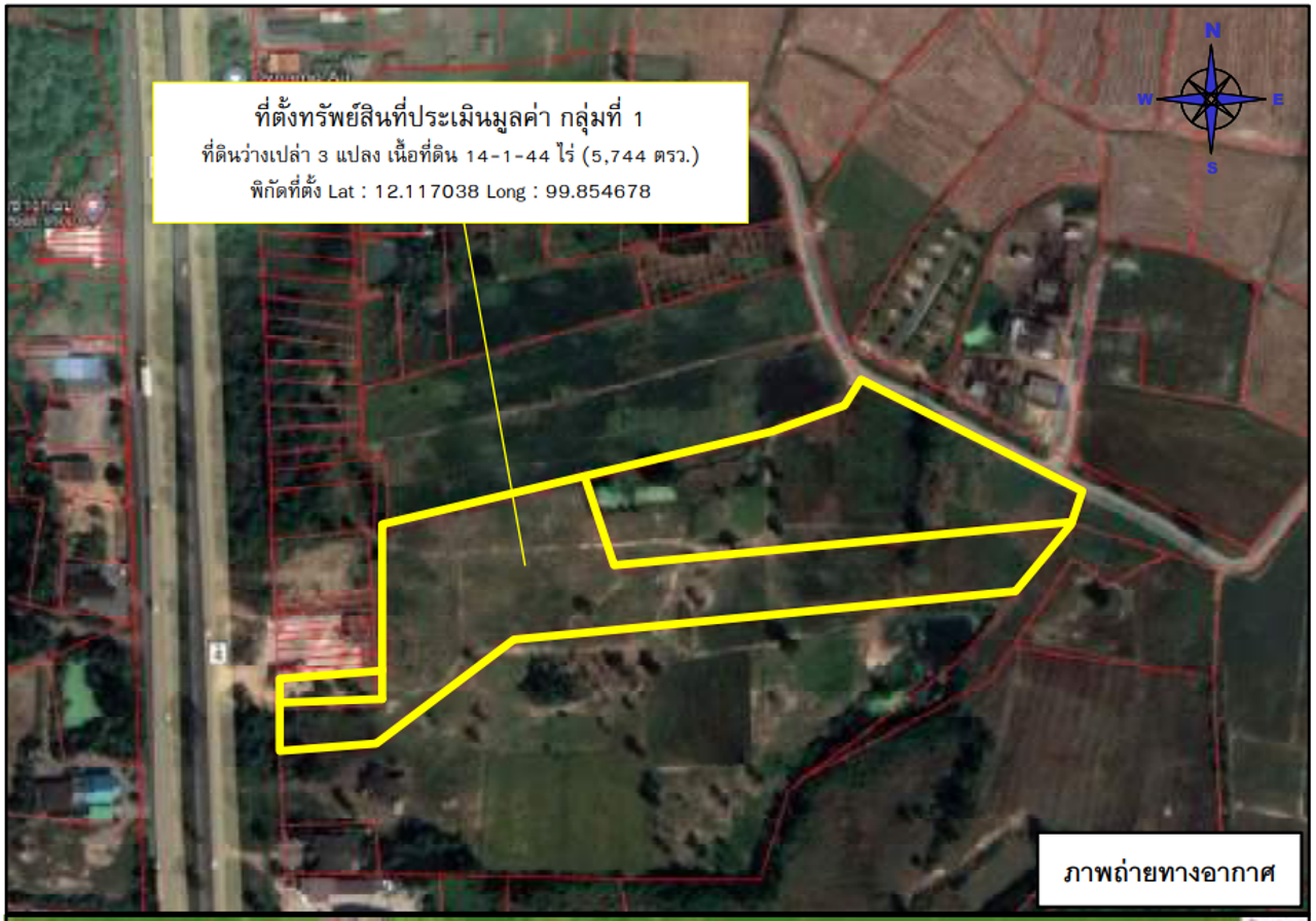 ขายที่ดินเปล่า 14ไร่ 1งาน 44ตารางวา ราคา 18.09 ล้านบาท ในอำเภอกุยบุรี ตำบลสามกระทาย