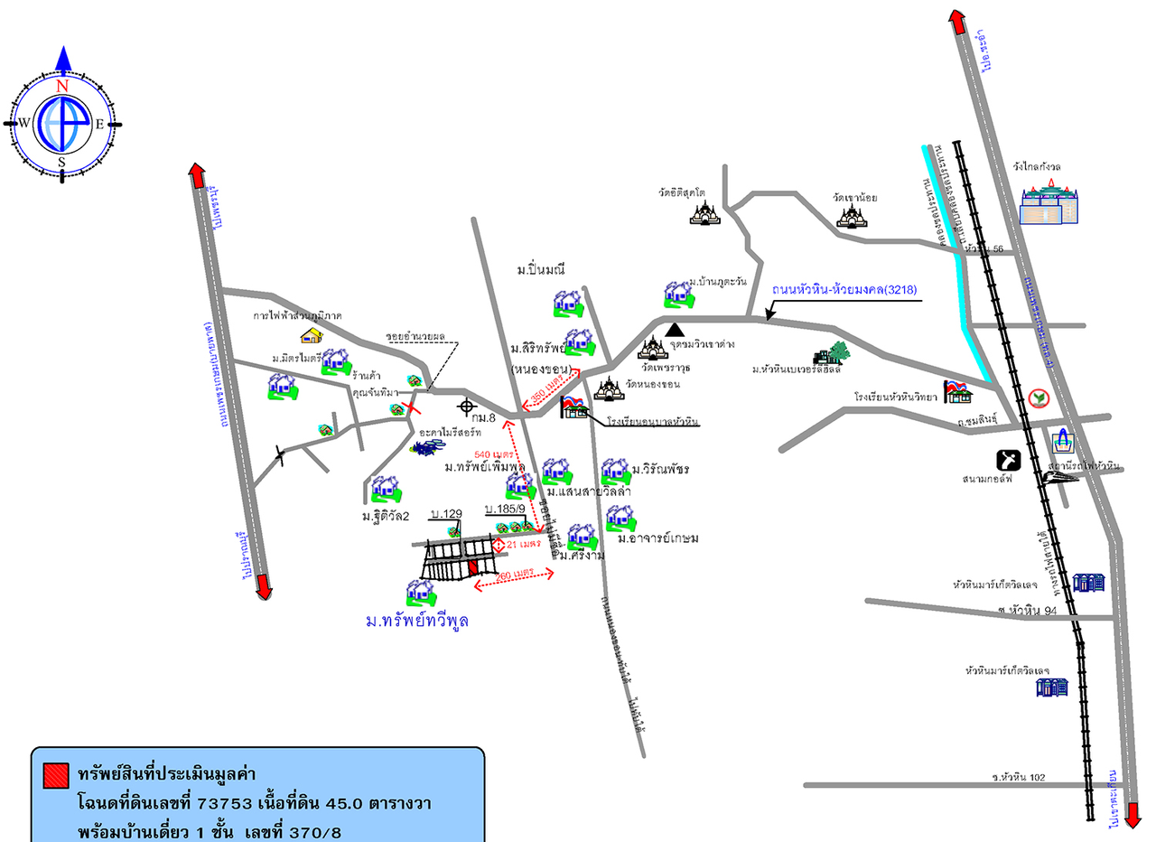 รายละเอียดเลขที่เอกสารสิทธิ์ : ที่ดินพร้อมสิ่งปลูกสร้าง 73753 ประจวบคีรีขันธ์ อำเภอหัวหิน ตำบลหินเหล็กไฟ