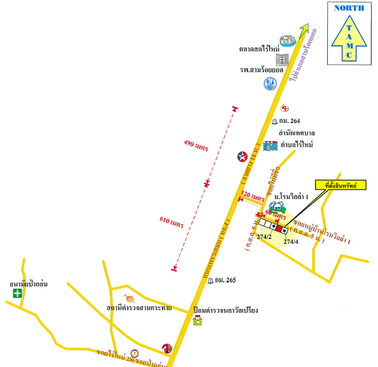 ที่ตั้ง : บ้านเดี่ยวชั้นเดียว เลขที่ 274/3 ติดถนนเพชรเกษมขาล่องใต้ ใกล้เคียงเทศบาลตำบลไร่ใหม่ อำเภอสามร้อยยอด จังหวัดประจวบคีรีขันธ์
