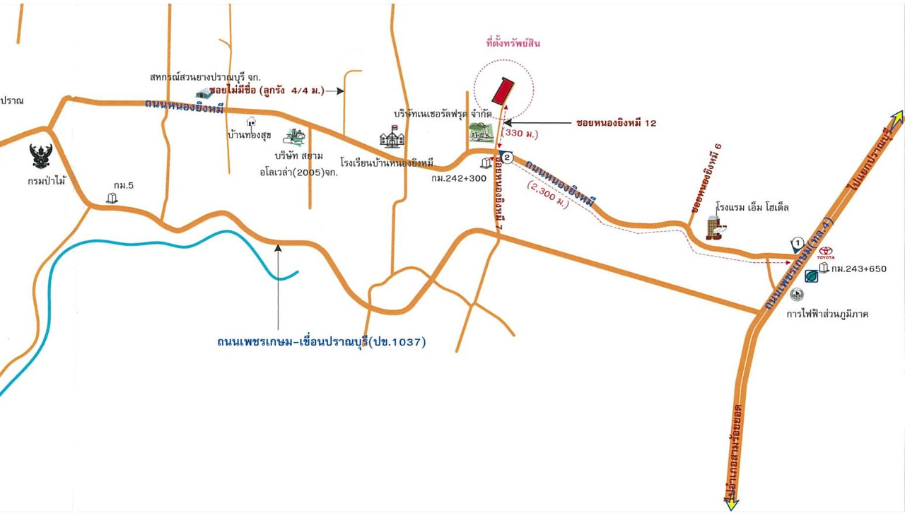 ที่ตั้ง : บ้านเดี่ยวชั้นเดียว เลขที่ 14 ม.6 และ อาคารส่วนโล่ง(โรงเลี้ยงสุกร) ติดถนนซอยบ้านหนองยิงหมี 12 ห่างจาก ถนนเพชรเกษม ทล. 4 กม. ที่ 236+500 2.63 กม.