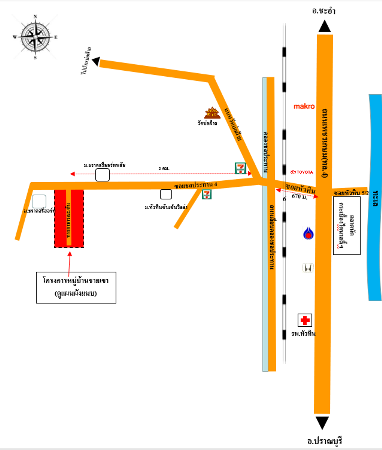 ที่ตั้ง : เลขที่ 100/209 โครงการ หมู่บ้านชายเขา แยกจากถนนเลียบคลองชลประทาน 4 เข้าไป 2.0 กม.