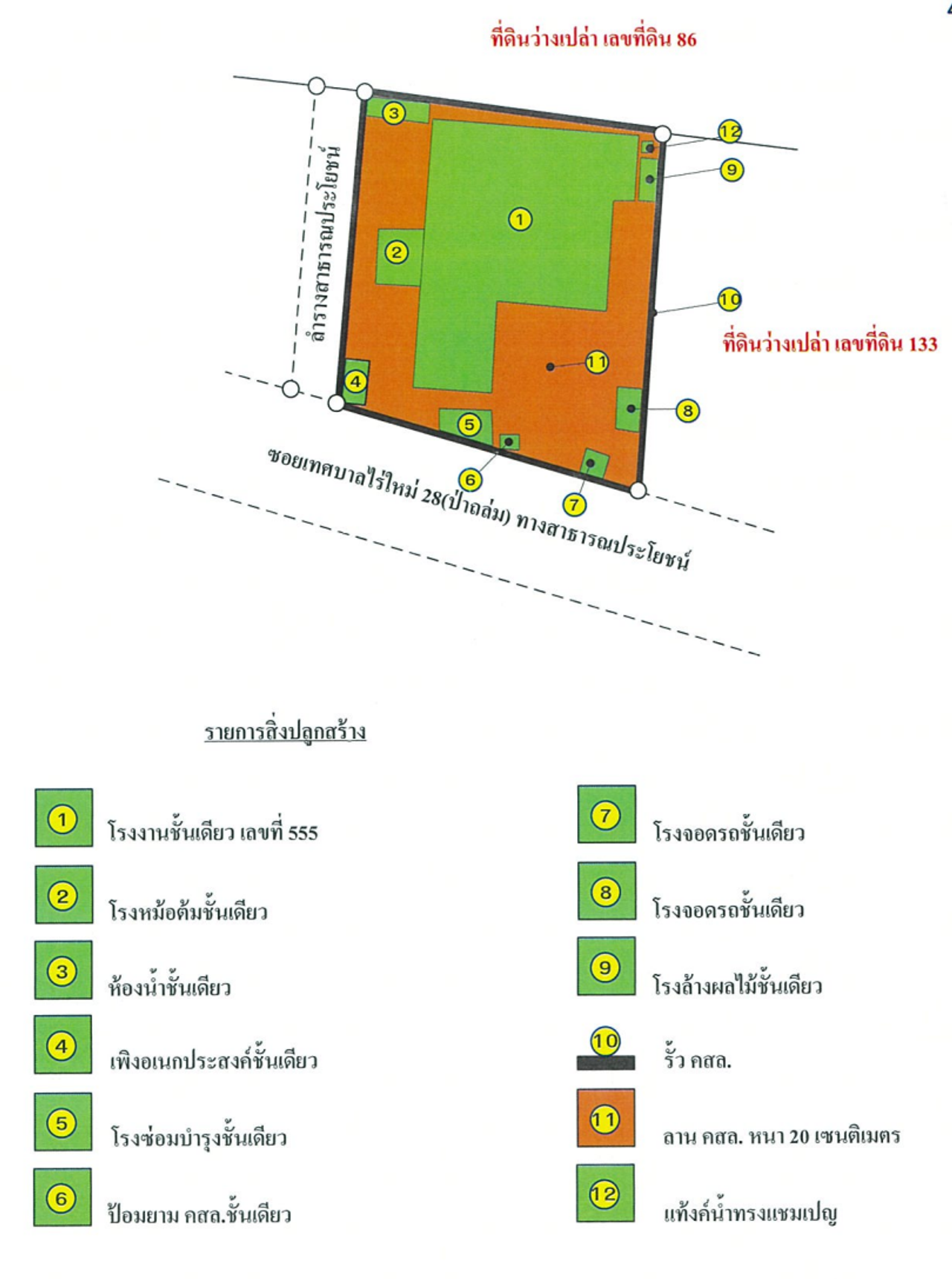 ที่ตั้ง : อาคารโรงงาน เลขที่ 555 และสิ่งปลูกสร้างรวม 12 รายการ