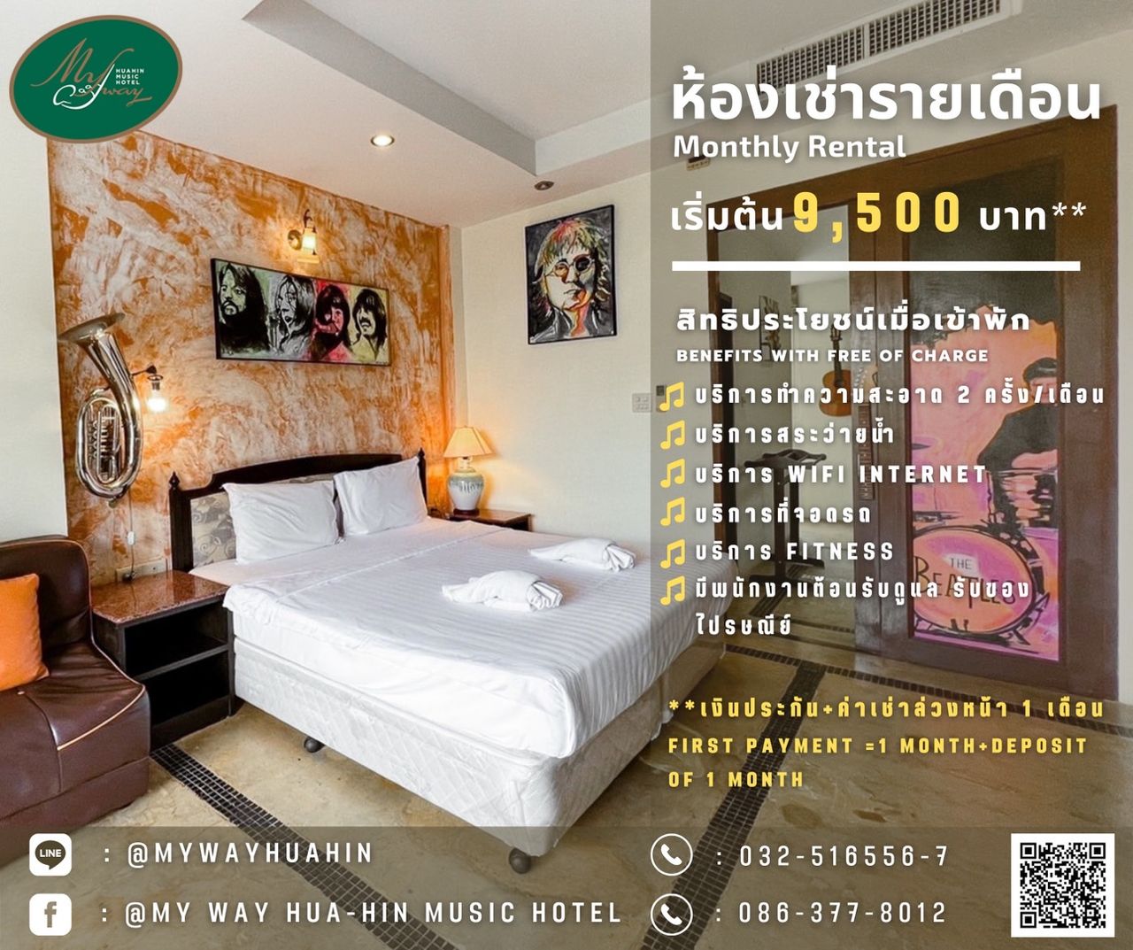 ประกาศให้เช่าห้องพักรายเดือน ใจกลางเมืองหัวหิน ขนาด37 - 40 ตรม. พร้อมครัวขนาดเล็ก ระเบียงส่วนตัว วิวสระน้ำทุกห้อง พร้อม WIFI ที่จอดรถ และพนักงานรักษาความปลอดภัย