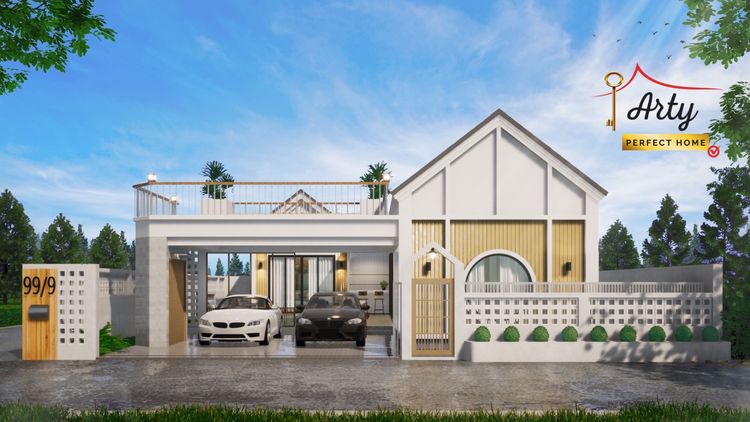 แบบบ้าน 4 ห้องนอน 5 ห้องน้ำ - สไตล์ “Modern Coronial” (โชว์ความโค้งเว้าทันสมัยสไตล์ตะวันตก)