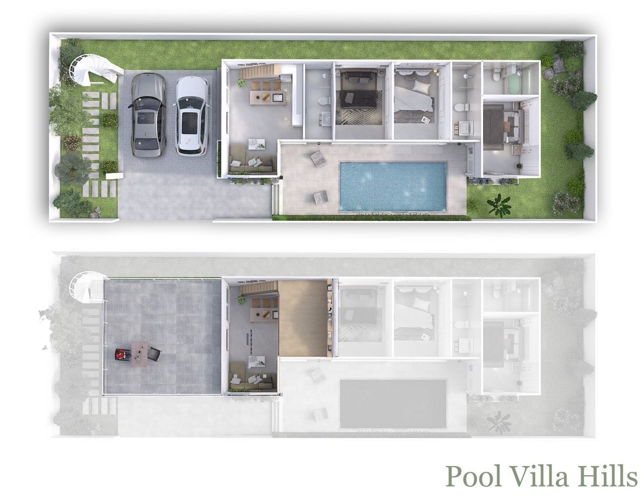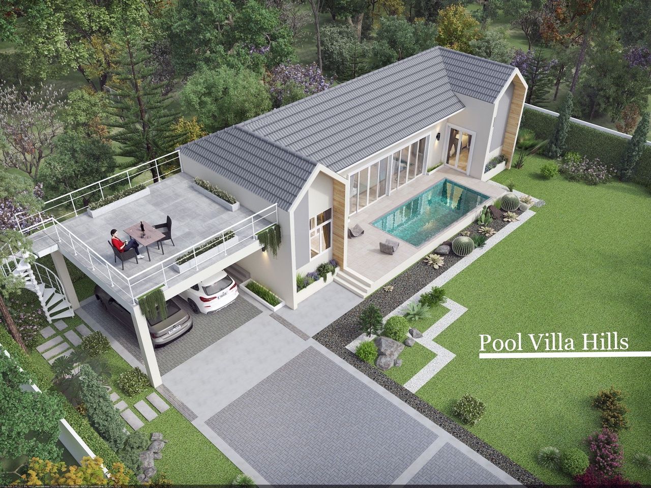 Pool Villa Hills start at 216 sq m. There are 2 bedrooms, 2 bathrooms, fully furnished.