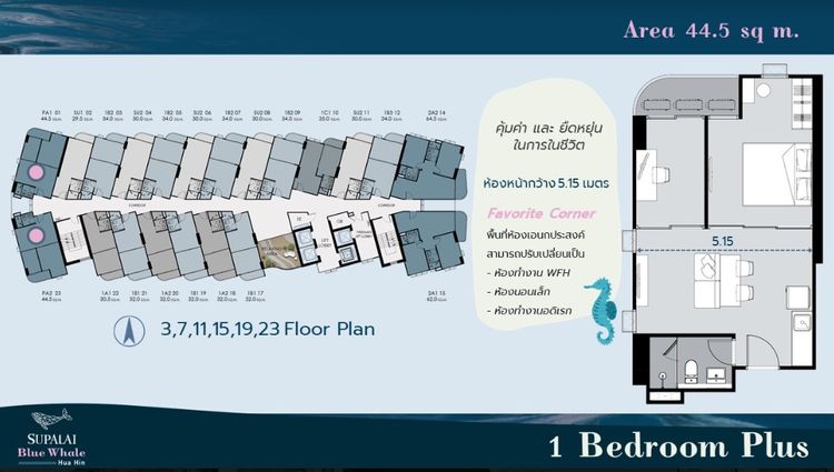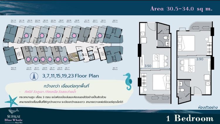 ศุภาลัย บลูเวล หัวหิน คอนโดฯ High Rise สูง 28 ชั้น ขนาดห้องหลากหลาย จัดเต็มเฟอร์นิเจอร์ยกเซ็ต