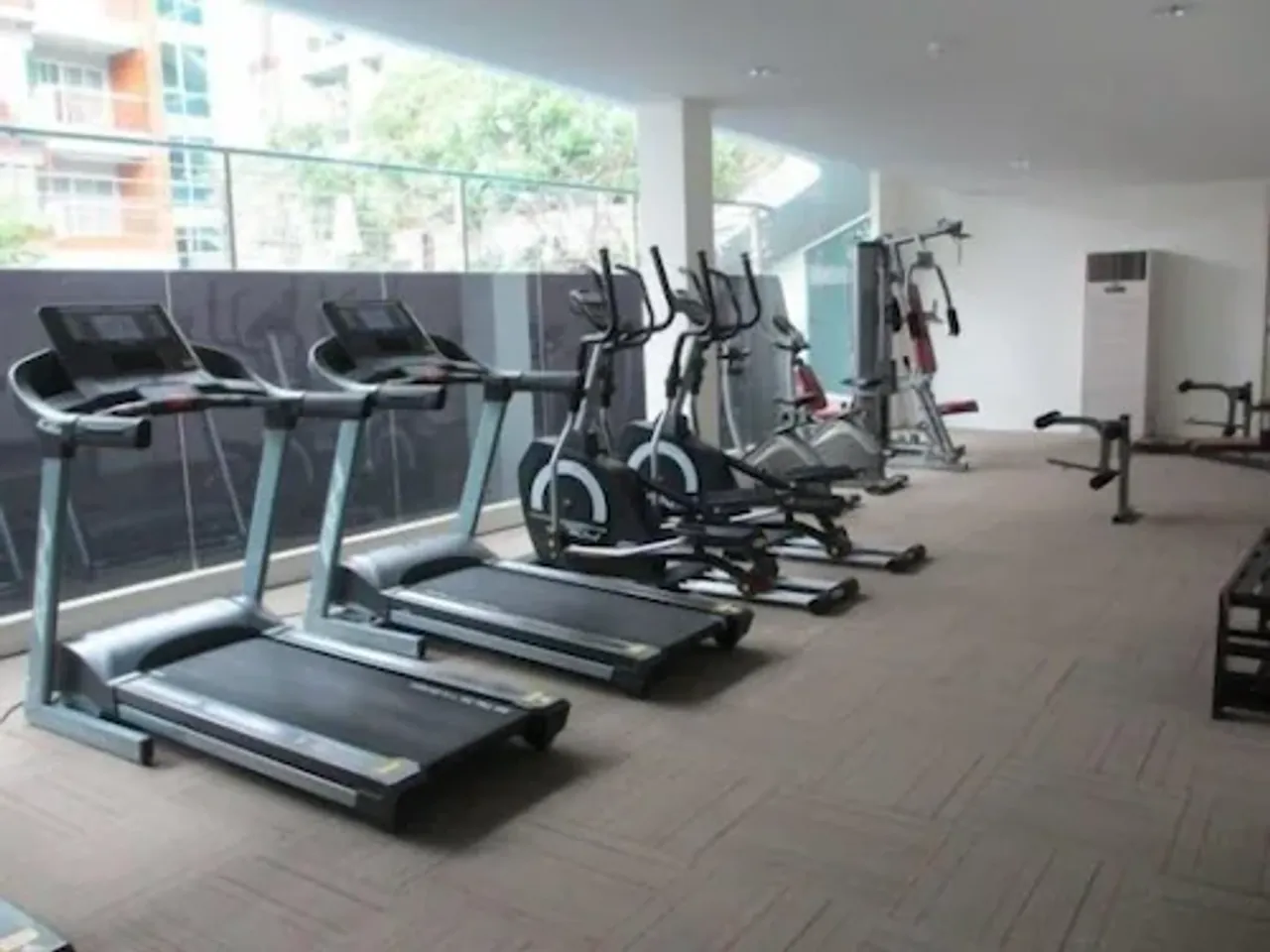 และห้องฟิตเนสในมุมมองกว้าง ที่นี่คุณจะได้พบกับสถานที่ที่สมบูรณ์แบบสำหรับการอยู่อาศัย